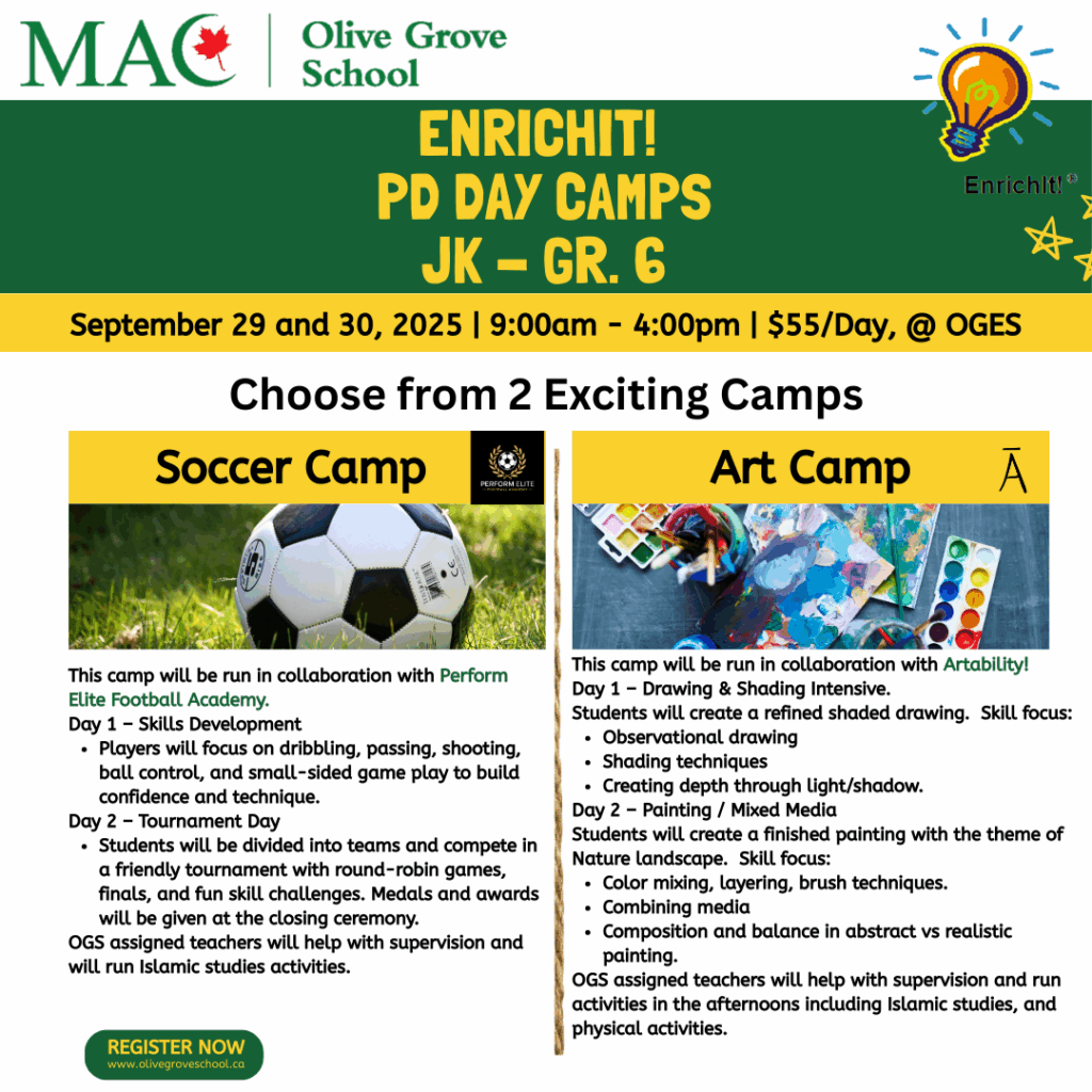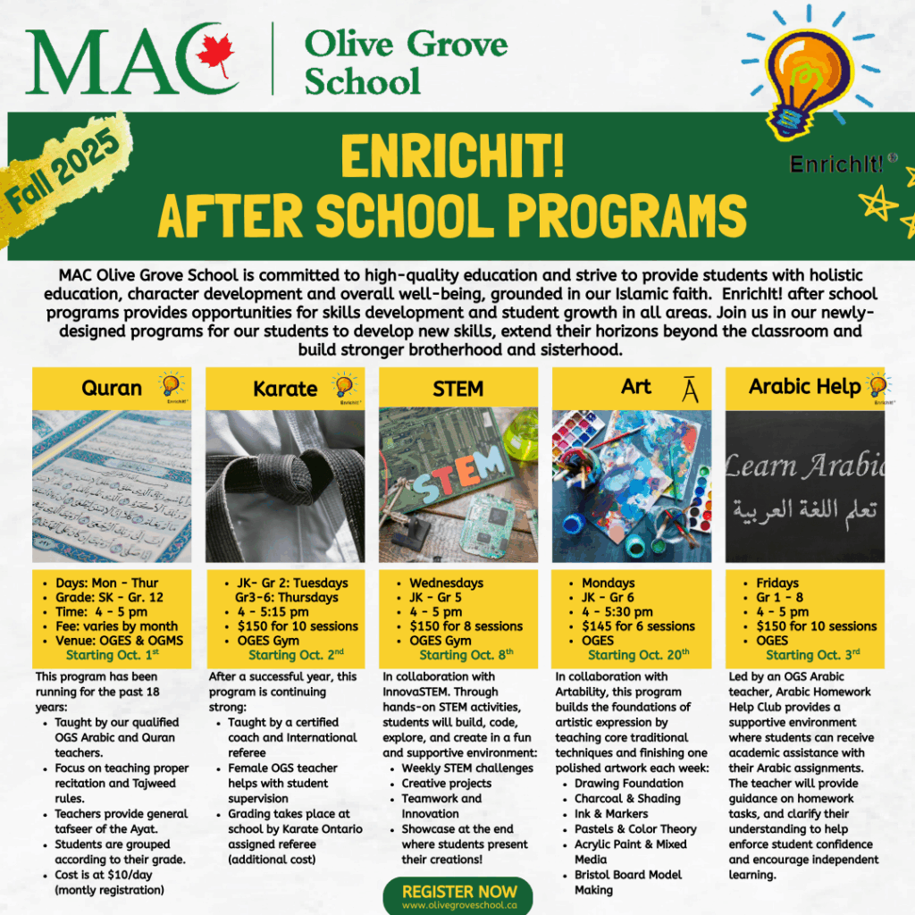 For more information, contact enrichit@olivegroveschool.ca