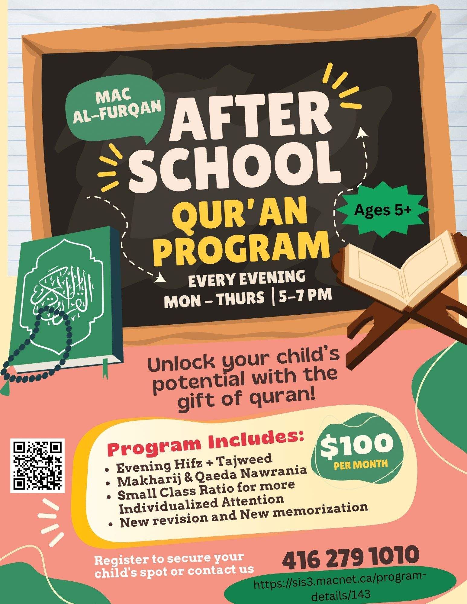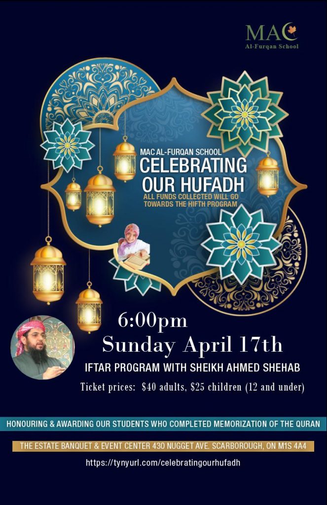 Established in 2015, the MAC Al-Furqan School Toronto is a full-time Hifz school that – along with the Ontario curriculum – teaches students to memorize the Quran, as well as Arabic and Islamic studies.